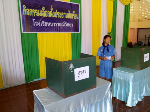 ภาพกิจกรรม - กิจกรรมเลือกตั้งประธานนักเรียน ระดับชั้นมัธยมศึกษาตอนต้น วันที่ 31 พฤษภาคม พ.ศ.2561
